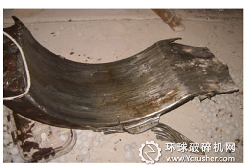 輕度燒瓦。指燒瓦時間較短,瓦面受傷程度較小,只是局部磨損或出現(xiàn)高點,磨損并被帶出的只是呈片狀巴氏合金,且進油處瓦口間隙沒有被堵塞等情況。如按傳統(tǒng)處理方法,必須頂磨取瓦研刮,既費時也費力。對此,我們總結(jié)出不頂磨取瓦的快速處理方法,即:輔傳慢轉(zhuǎn)磨機,加大磨機的通風量及燒瓦處的淋油量,一方面使軸瓦及中空軸快速冷卻下來;另一方面則在慢轉(zhuǎn)過程中,把中空軸表面粘附或燒結(jié)的巴氏合金刮去,并用油石打磨中空軸,等中空軸溫度正常后,停磨吊出軸承蓋,清理瓦口進出油處的巴氏合金屑(主要是清理瓦口間隙),清洗稀油站回油處濾網(wǎng)及進油過濾網(wǎng),油臟時要更換潤滑油。然后按正常生產(chǎn)減小投料量啟動磨機,加大燒瓦處的淋油量使磨機在運轉(zhuǎn)中把瓦面產(chǎn)生的高點磨去。運轉(zhuǎn)中要注意控制中空軸表面的溫度不超過75℃,溫度高時把磨機停下來,慢轉(zhuǎn)磨冷卻,等中空軸表面的溫度降到30℃再重新啟動磨機。經(jīng)過幾次磨合,就可使高點磨去,中空軸溫度達到正常范圍之內(nèi)。此方法在Φ1.7m×2.5m煤磨、Φ2.4m×12m和Φ2.6m×10m水泥磨等輕度燒瓦時應用過,只要1~3個程序就可處理好,效果較好。