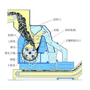 錘式破碎機結(jié)構(gòu)及破碎運行原理: