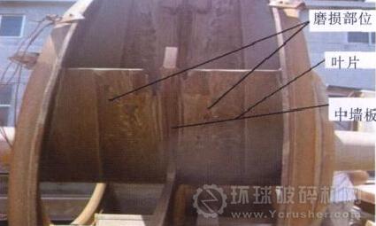 圖1 粉磨系統(tǒng)循環(huán)風(fēng)機(jī)的葉輪磨損情況