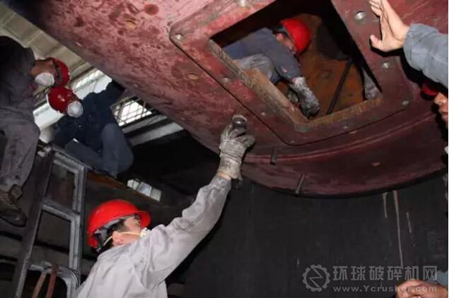 在球磨機(jī)筒體內(nèi)外,班組成員配合默契、抬、撬、翻、推、擰多次重復(fù)的動(dòng)作,多次奮力的配合,一分分的堅(jiān)持,一滴滴的汗水,為設(shè)備的穩(wěn)定運(yùn)行提供著有力的保障。