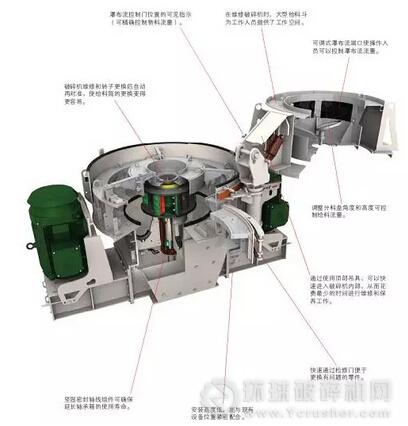 大型化的VSI機(jī),具有靈活的機(jī)械性能、好的耐磨材料和零件設(shè)訓(xùn)、以及更有效的粉塵控制系統(tǒng)等,正推動(dòng)VSI機(jī)在第四級(jí)、第二級(jí)甚至第二級(jí)(破碎)同路中的應(yīng)用,接近臥式