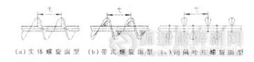 根據(jù)螺旋葉片的形狀不同一般有實(shí)體螺旋面型、帶式螺旋面型和間隔葉片螺旋面型三種型式。