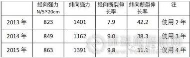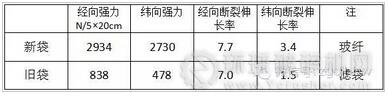 上述表明該電廠濾料經(jīng)向變化很小,且使用4年后強(qiáng)力性能基本沒(méi)有下降。