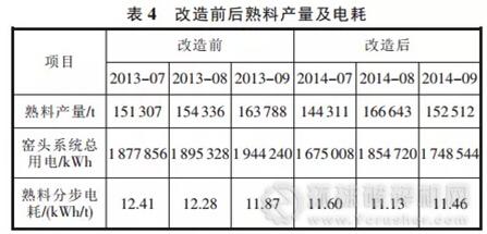 改造前后窯頭系統(tǒng)熟料分步電耗平均降低0.5kWh/t,按全年熟料產(chǎn)量161.93 萬噸計(jì)算,一年約節(jié)電 80 萬 kWh(見表4)。 袋除塵器與電除塵器相比具有維護(hù)簡單、維護(hù)量小和易操作的特點(diǎn)。改后實(shí)測顆粒物排放值符合國家標(biāo)準(zhǔn)。 另外,此次改造中窯頭排風(fēng)機(jī)未作變動(dòng),從實(shí)際使用情況來看可以滿足正常使用要求。