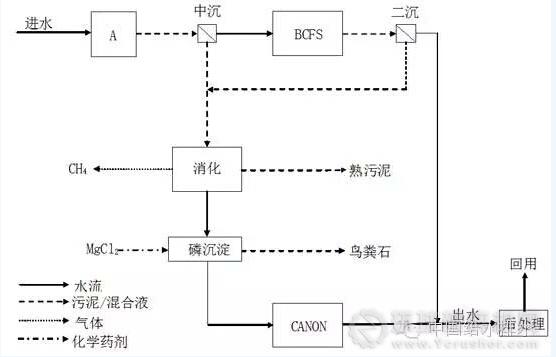 圖2 定位于能源與磷回收的市政污水處理概念工藝