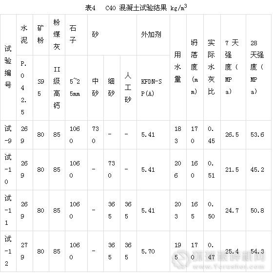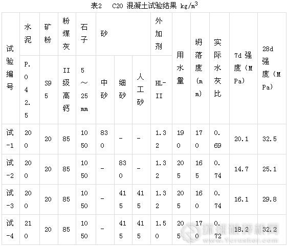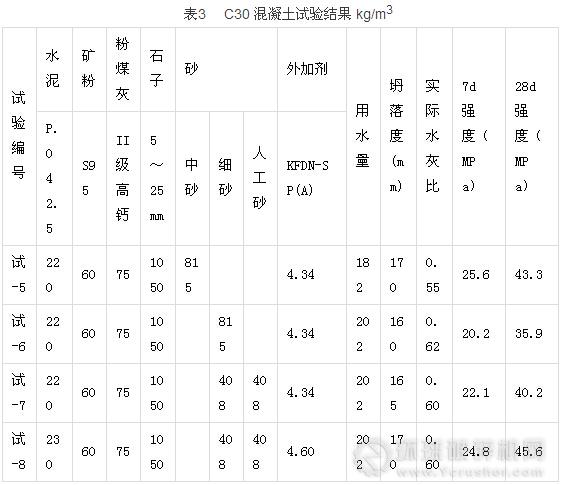 (3)在預(yù)拌混凝土的使用中,必須根據(jù)原材料情況、混凝土強(qiáng)度等級、工程部位來選擇機(jī)制砂的摻量。