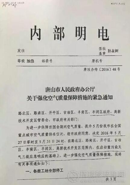 按照市重污染天氣應(yīng)對(duì)指揮部決定,2016年5月27日零時(shí)-5月31日24時(shí),在路北、路南、古冶、開平、豐潤(rùn)、豐南、高新技術(shù)開發(fā)區(qū)范圍內(nèi),在啟動(dòng)重污染天氣三級(jí)應(yīng)急響應(yīng)的基礎(chǔ)上,對(duì)以下工業(yè)企業(yè)進(jìn)一步采取停限產(chǎn)措施: