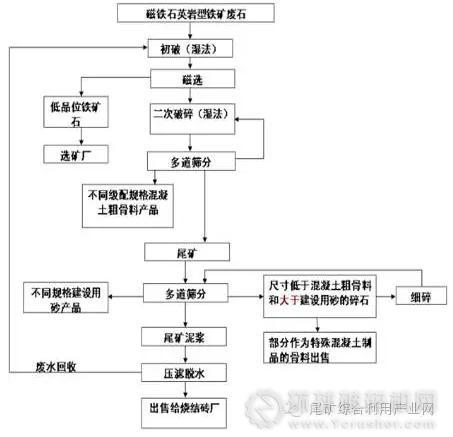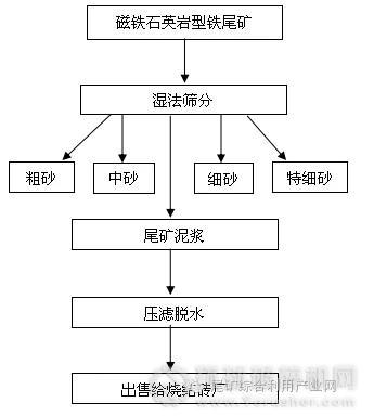 圖1 磁鐵石英巖型鐵尾礦生產(chǎn)建設(shè)用砂工藝流程示意圖