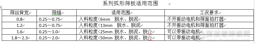 高效弧形篩板在一年多的試驗使用過程中,脫水、脫介、脫泥效果良好,壽命高于傳統(tǒng)篩板壽命。我們對高效弧形篩板的制作工藝和背面加強筋都進行了改進,能滿足現(xiàn)場的不同工況要求。高效弧形篩板的使用范圍