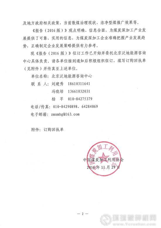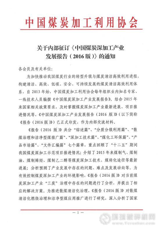 關(guān)于內(nèi)部征訂《中國煤炭深加工產(chǎn)業(yè)發(fā)展報(bào)告(2016版)》的通知