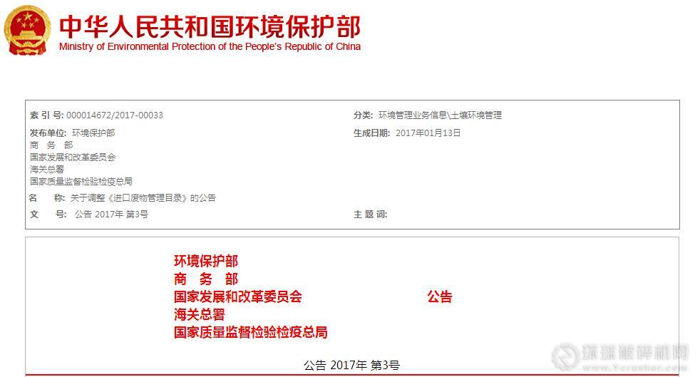 為進(jìn)一步規(guī)范固體廢物進(jìn)口管理,防治進(jìn)口廢物環(huán)境污染,環(huán)保部發(fā)布了關(guān)于調(diào)整《進(jìn)口廢物管理目錄》的公告,內(nèi)容如下: