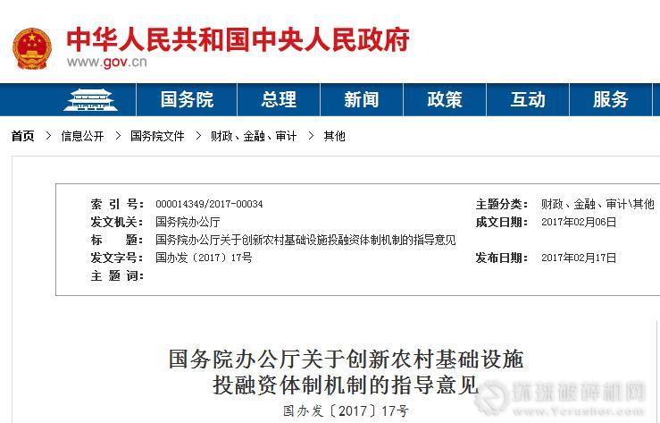 近日,國務(wù)院辦公廳印發(fā)了《關(guān)于創(chuàng)新農(nóng)村基礎(chǔ)設(shè)施投融資體制機制的指導(dǎo)意見》(以下簡稱《意見》),部署創(chuàng)新農(nóng)村基礎(chǔ)設(shè)施投融資體制機制,加快農(nóng)村基礎(chǔ)設(shè)施建設(shè)步伐。