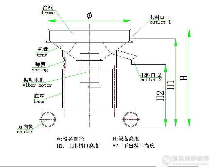 高頻篩常見的故障及解決方法 1、脫水效果不佳 原因:操作不當;網孔堵塞、入篩物料中的細粒增加和水分增加,使篩上料層過厚;給料不均等。 解決方法:將篩網兩邊拉緊;機械問題處理完畢,可以來一段時間的逆向旋轉,以提高篩分質量。 2、不能啟動或者振幅偏小 原因以及解決方法:檢查電氣上有無障礙、電動機有無損壞、是否電壓不足;如均無問題,可以從機械上查,看振動脫水篩篩面上的物料是否堆積太多,是則清除;清洗檢修激振器,再適當調整偏心軸加重塊或者是副偏心塊的位置。 3、篩面上物料流動異常 原因:篩箱剛度不足,存在臨界頻率,聯接螺栓已振松,甚至到全面振松的程度,即緊固;篩箱的橫向水平沒找準,從支撐腳彈簧的支撐座或彈簧本身找毛病,換彈簧或改支座尺寸,還有可能篩面網破損引起,只要更換篩網即可。如果一直因篩箱剛度不足,橫向水平沒找準,會造成橫梁斷裂,如仍在運轉也會使物料流動異常。 還有可能是操作不當,即給料極不平衡也是原因之一。 4、噪聲過大 可能是軸承損壞、螺栓松動、橫梁斷裂和彈簧損壞,除螺栓可擰緊外,其它三種狀況均需更換零件。 5、旋轉變慢,軸承發(fā)熱 原因及解決方法:平時的保養(yǎng)沒跟上,軸承缺潤滑脂,如果是新加油脂,則是油脂的質量問題或加得太滿,劣質油使之軸承阻塞迷宮密封卡塞,所以潤滑脂的質量相當重要。 高頻篩的使用與維護 在啟動篩機前,應檢查周圍是否有妨礙篩機運轉的障礙物,各處聯接螺栓是否緊固,尤其是振動電機、支承座、篩板的固定螺栓要重新緊固一遍。 檢查兩臺振動電機的轉向是否相反,如轉向相同,應變更一臺電機的電源接線,使兩臺振動電機的轉向相反。 篩機運轉時,先空載啟動、運行、停車一次觀察有無異常現象及聲響,空運轉時應平穩(wěn)正常。連續(xù)空運轉4小時后,測量軸承溫度,軸承溫度不得超過75oC;并將各部位聯接螺栓重新緊固一次,以后再反復進行2-3次,帶料運轉時,給料要均勻,使物料在篩面上均勻分布,如物料“跑偏”,應調整給料點。 篩機停機前,應先停止給料,等篩面物料走完后,再停機。停機后要及時清理篩面上的物料和雜物