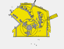 圓弧形的反擊板,比較常用的有漸開線形的,這種結(jié)構(gòu)形式的特點(diǎn)在反擊板的各點(diǎn)上,礦石都以垂直的方向進(jìn)行沖擊,破碎效率更高,產(chǎn)能也更高。