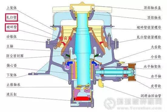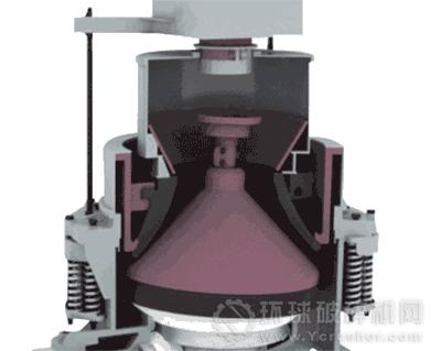 破碎腔型從給料口到排料口,受?chē)Ы堑挠绊懀瑫r(shí)受到破碎機(jī)高度的限制,破碎機(jī)的腔容相對(duì)變化,對(duì)破碎效率有一定的影響。