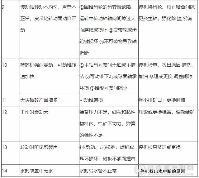 在破碎過(guò)程中,動(dòng)錐襯板與定錐襯板不斷磨損,使之排礦口逐漸增大。為了保證一定的產(chǎn)品粒度,就要隨著磨損情況,不斷的調(diào)整排礦口尺寸。排礦口的調(diào)整,是借助于調(diào)整環(huán)與支承套間的鋸齒形螺紋升、降定錐襯板來(lái)實(shí)現(xiàn)的。 為了使齒形螺紋得到潤(rùn)滑,以及調(diào)整和拆裝方便,螺紋必須有足夠的間隙。 調(diào)整后的排礦口,可采用鋼絲系鉛球的方法,通過(guò)破碎腔到排礦口處測(cè)量排礦口尺寸。經(jīng)過(guò)加工的新襯板測(cè)量一點(diǎn)即可,未經(jīng)加工或已磨損的襯板應(yīng)測(cè)量6~8點(diǎn)。排礦口達(dá)到尺寸要求后,利用鎖緊缸將調(diào)整環(huán)鎖緊,否則不允許啟動(dòng)。