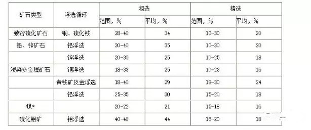 礦漿深度指礦漿中固體礦物與液體(水)重量或系,選礦廠常用液固比或固體深度表示,選煤廠用固體表示,常見的浮選深度見下表: