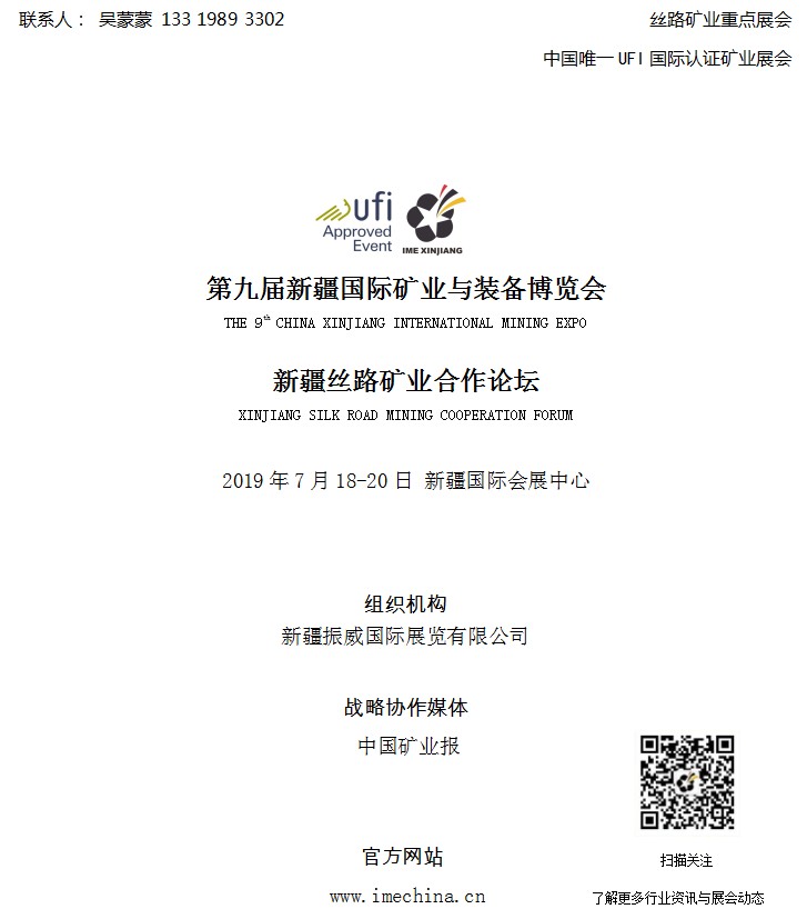 新疆礦博會(huì)已成功舉辦至第九屆,是我國(guó)礦業(yè)建設(shè)和國(guó)際產(chǎn)能合作的重要平臺(tái),每年有來(lái)自山東、吉林、河南、湖南、青海等25個(gè)省市(自治區(qū))的國(guó)土、礦業(yè)單位以及哈薩克、吉爾吉斯、俄羅斯、塔吉克、烏茲別克等“一帶一路”沿線國(guó)家的礦業(yè)管理部門和企業(yè)代表參展參會(huì),專業(yè)觀眾達(dá)13000余人。在各方的支持和努力下,新疆礦博會(huì)已經(jīng)發(fā)展成為我國(guó)“一帶一路”礦業(yè)領(lǐng)域的重點(diǎn)展會(huì),也是中國(guó)礦業(yè)領(lǐng)域唯一獲得國(guó)際展覽業(yè)聯(lián)盟UFI認(rèn)證的行業(yè)盛會(huì)。