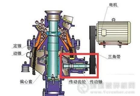 圓錐破碎機(jī)的傳動形式是剛性連接,電動機(jī)通過彈性聯(lián)軸器與齒輪軸進(jìn)行剛性連接,當(dāng)圓錐破碎機(jī)發(fā)生過鐵或超負(fù)荷運行時,就很容易造成大小齒輪的損壞。