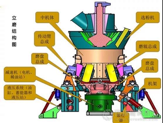 從磨機的工作原理可知,立磨在工作時是通過磨輥施加壓力來