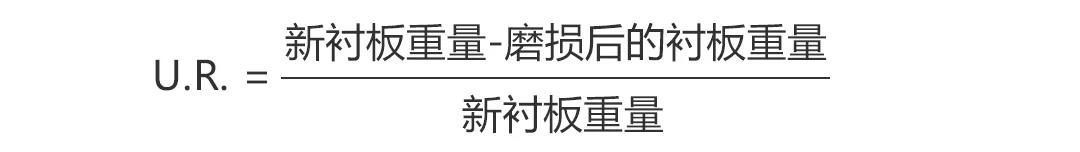 當(dāng)襯板磨損的利用率達(dá)到50%時(shí),確定每小時(shí)產(chǎn)量減少多少噸。如果這個(gè)值高于產(chǎn)量的10%,建議更換襯板。