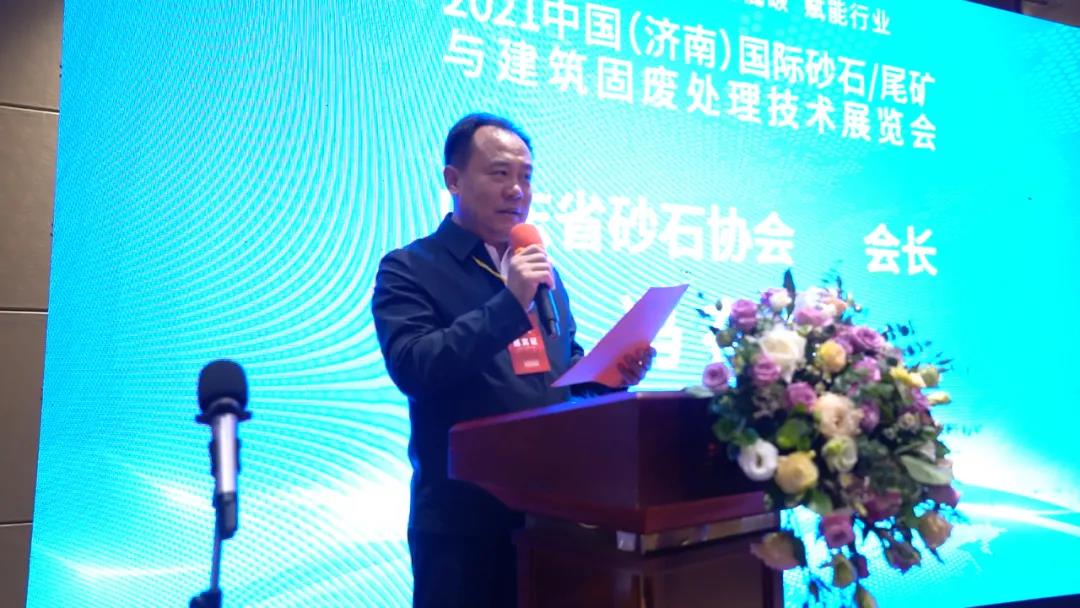 新聞發(fā)布會開始,首先由山東省砂石協(xié)會馮存?zhèn)L致辭,馮會長表示,山東省砂石協(xié)會作為2021濟(jì)南砂石展的主辦單位,將大力整合行業(yè)資源,充分發(fā)揮協(xié)會在行業(yè)內(nèi)的影響力。攜手廣大砂石會員企業(yè),共同借力2021濟(jì)南砂石展的“東風(fēng)”,掀起砂石行業(yè)綠色革命浪潮,搶占智能制造制高點(diǎn),創(chuàng)新新技術(shù)新裝備,構(gòu)建綠色發(fā)展新格局,迅速完成砂石行業(yè)轉(zhuǎn)型升級。