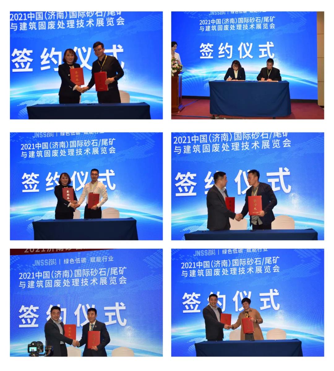 經(jīng)過詳盡的展會介紹,參會的數(shù)十位企業(yè)嘉賓對2021濟(jì)南砂石展有了進(jìn)一步了解與認(rèn)識,也對濟(jì)南砂石展的舉辦充滿了期待與信心,積極報(bào)名參加濟(jì)南砂石展并上臺簽約,組委會與山水重工、景津環(huán)保、功力集團(tuán)、鑫金山智能裝備、金寶山機(jī)械、重慶弗雷西等企業(yè)進(jìn)行簽約。本屆砂石展會重點(diǎn)邀約行業(yè)領(lǐng)軍企業(yè)入駐展會,匯集砂石行業(yè)最尖端力量,匯融砂石行業(yè)新技術(shù)、新裝備,聚力產(chǎn)業(yè)新格局。