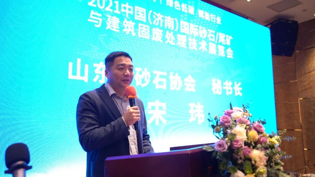 為了使砂石行業(yè)提前了解到濟(jì)南砂石展的戰(zhàn)略布局及規(guī)劃,山東省砂石協(xié)會秘書長宋瑋上臺為大家做展會介紹:2021濟(jì)南砂石展將于12月10-12日在山東國際會展中心舉辦。重點(diǎn)突出專業(yè)性、科技性和前瞻性,展示機(jī)制砂領(lǐng)域最新生產(chǎn)技術(shù)和發(fā)展趨勢。展會設(shè)展面積約20000平米,展商數(shù)量超300家,展示范圍涵蓋全產(chǎn)業(yè)鏈,打造砂石骨料及建筑固廢處理裝備一站式采購平臺。在展會現(xiàn)場,展商與采購商實(shí)現(xiàn)當(dāng)面洽談、精準(zhǔn)對接,現(xiàn)場簽約,幫助展商完成品牌推廣與代理合作。展會同期將舉辦多場論壇活動,千余家砂石骨料生產(chǎn)企業(yè)、混凝土生產(chǎn)企業(yè)、水泥制品企業(yè)、建設(shè)施工企業(yè)共同參與,實(shí)現(xiàn)產(chǎn)業(yè)鏈上下游同步對接合作。
