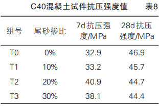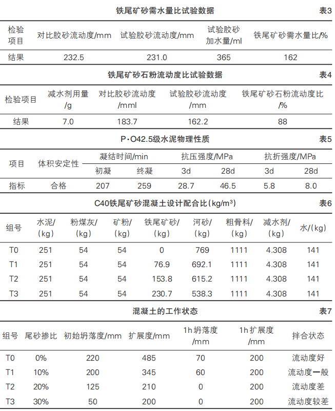 本文采用鐵尾礦砂部分取代河砂作為混凝土細(xì)骨料配制 C40 混凝土,研究了鐵尾礦砂對混凝土的工作性能和力學(xué)性能的影響,結(jié)論如下: