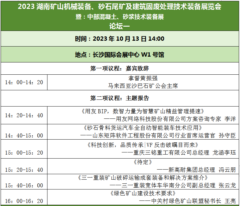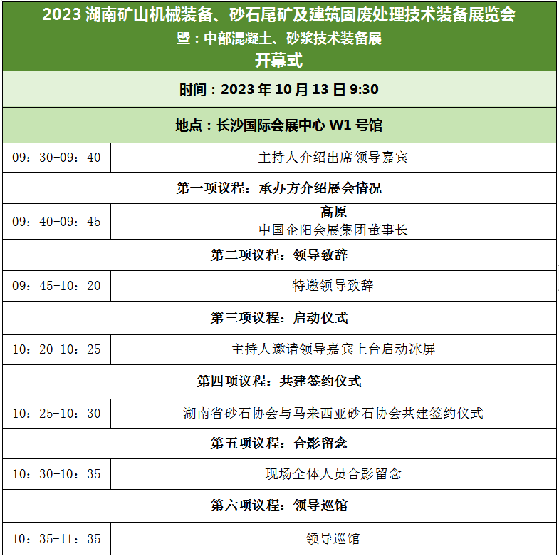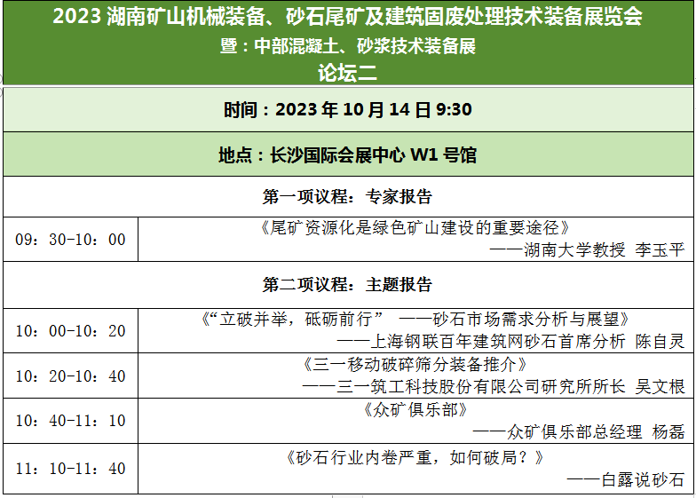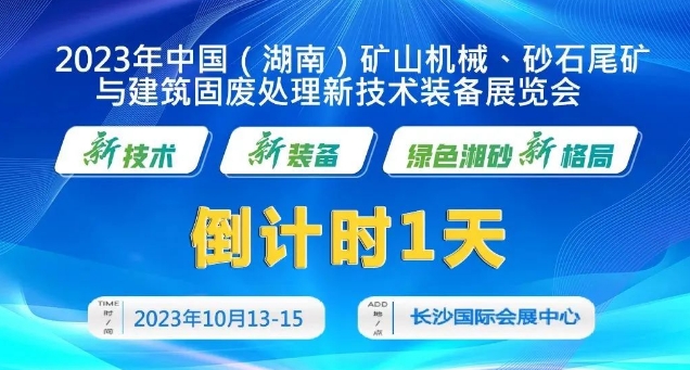 2023中國(湖南)礦山機械、砂石尾礦與建筑固廢處理暨中部混凝土、砂漿技術裝備新技術裝備展覽會,將于10月13-15日在長沙國際會展中心舉辦。